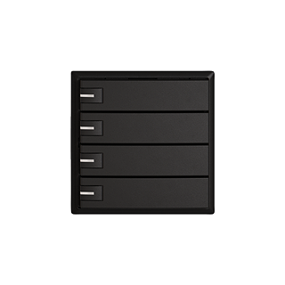 EDIZIO.liv • KNX-Taster RGB • 21-30 V DC SELV • Grundbedarf max. 250 mW • KNX-Busanschlussklemme • Inklusive KNX Secure Busankoppler • Besteht aus Funktionseinsatz mit bis zu acht möglichen Tastenbelegungen • Mit Temperaturfühler • SNAPFIX® Befestigungssystem • Mit RGB-LED rot, grün, blau, weiss, gelb, volett, und 2 frei definierbaren Anwenderfarben • Zusätzliche Leistung pro LED max. 10 mW • Vierfach-Taste • 1-Tastenbedienung • Einbautiefe 22 mm • G.A • schwarz • IP20 • 60 x 60 mm