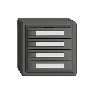 EDIZIO.liv • Poussoir KNX RGB • 21-30 V DC SELV • Absorbation de base 250 mW max. • Borne de raccordement bus KNX • Avec coupleur de bus KNX Secure • Se compose de unité fonctionnelle avec jusqu'à huit configurations de touches possibles • Avec capteur de température • Système de fixation SNAPFIX® • Sans LED • Avec étiquette en papier • Touche quadruple • Commande à 1 touche • Hauteur 44 mm • GX.54.A • gris foncé • IP20 • 74 x 74 mm