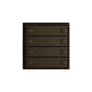EDIZIO.liv • Poussoir KNX RGB • 21-30 V DC SELV • Absorbation de base 250 mW max. • Borne de raccordement bus KNX • Avec coupleur de bus KNX Secure • Se compose de unité fonctionnelle avec jusqu'à huit configurations de touches possibles • Avec capteur de température • Système de fixation SNAPFIX® • Sans LED • Touche quadruple • Commande à 2 touches • Profondeur 22 mm • G.A • umbra • IP20 • 60 x 60 mm