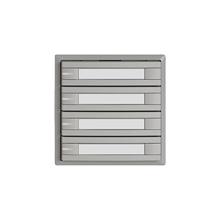 EDIZIO.liv • Poussoir KNX RGB • 21-30 V DC SELV • Absorbation de base 250 mW max. • Borne de raccordement bus KNX • Avec coupleur de bus KNX Secure • Se compose de unité fonctionnelle avec jusqu'à huit configurations de touches possibles • Avec capteur de température • Système de fixation SNAPFIX® • Avec RGB LED rouge, vert, bleu, blanc, jaune, violet, et 2 couleurs utilisateur librement définissables. • Puissance supplémentaire par LED 10 mW max. • Avec étiquette en papier • Touche quadruple • Commande à 2 touches • Profondeur 22 mm • G.A • gris clair • IP20 • 60 x 60 mm