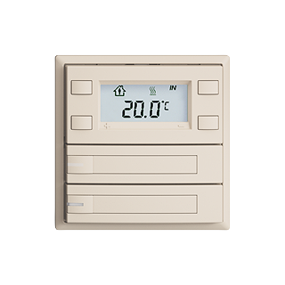 EDIZIOdue colore • Poussoir RTH KNX RGB • 21-30 V DC SELV • Absorbation de base 250 mW max. • Puissance supplémentaire par LED 30 mW max. • Supplément rétro-éclairage LCD 200 mW max. • Borne de raccordement bus KNX • Avec BCU • Les appareils KNX portant la désignation supplémentaire RGB peuvent être programmés uniquement avec l'application correspondante munie de la désignation supplémentaire RGB • Avec RGB LED rouge, vert, bleu, blanc, jaune, violet, et 2 couleurs utilisateur librement définissables. • Avec étiquette en papier • Touche double • Commande à 1 touche • Profondeur 22 mm • F • crema • IP20 • 60 x 60 mm