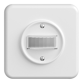STANDARDdue (SNAPFIX) • Détecteur de mouvement pirios 180 R eco • Relais 1 canal • 10 A, 230 V AC • Max. 2300 W • Seuil de luminosité et temporisation réglables • Fonction d'impulsion • Entrée poussoir pour poussoir externe ou extension de champ • Eclairage d'orientation jaune, blanc, rouge, vert, bleu • Angle de détection 180°, réductible • Hauteur de montage 1,1 m, champ de détection tangentiel 8 m • Saillie au mur 11 mm • Disque frontale 53 mm, pour découpe 50 mm • Système de fixation SNAPFIX® • Profondeur 36 mm • QMI.A • blanc • IP20 • 90 x 90 mm