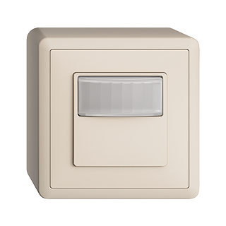 Détecteur de mouvement pirios 180 R eco plus • Détecteur de mouvement avec poussoir • Relais 1 canal • 10 A, 230 V AC • Fonction de poussoir: ENCL/DECL, ENCL permanent / DECL permanent • Max. 2300 W • Seuil de luminosité et temporisation réglables • Fonction d'impulsion • Entrée poussoir pour poussoir externe ou extension de champ • Mode automatique ou semi-automatique • Eclairage d'orientation jaune, blanc, rouge, vert, bleu • Angle de détection 180°, réductible • Hauteur de montage 1,1 m, champ de détection tangentiel 8 m • Hauteur 68 mm • FX.54 • crema • IP20 • 74 x 74 mm