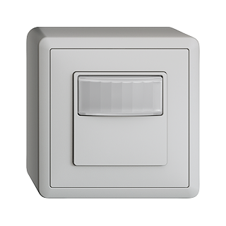 Détecteur de mouvement pirios 180 R eco plus • Détecteur de mouvement avec poussoir • Relais 1 canal • 10 A, 230 V AC • Fonction de poussoir: ENCL/DECL, ENCL permanent / DECL permanent • Max. 2300 W • Seuil de luminosité et temporisation réglables • Fonction d'impulsion • Entrée poussoir pour poussoir externe ou extension de champ • Mode automatique ou semi-automatique • Eclairage d'orientation jaune, blanc, rouge, vert, bleu • Angle de détection 180°, réductible • Hauteur de montage 1,1 m, champ de détection tangentiel 8 m • Hauteur 68 mm • FX.54 • gris clair • IP20 • 74 x 74 mm