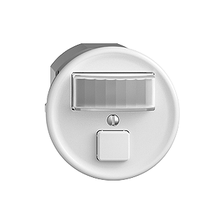 Détecteur de mouvement pirios 180 R eco plus • Détecteur de mouvement avec poussoir • Relais 1 canal • 10 A, 230 V AC • Fonction de poussoir: ENCL/DECL, ENCL permanent / DECL permanent • Max. 2300 W • Seuil de luminosité et temporisation réglables • Fonction d'impulsion • Entrée poussoir pour poussoir externe ou extension de champ • Mode automatique ou semi-automatique • Eclairage d'orientation jaune, blanc, rouge, vert, bleu • Angle de détection 180°, réductible • Hauteur de montage 1,1 m, champ de détection tangentiel 8 m • Saillie au mur 14 mm • Disque frontale 60 mm, pour découpe 58 mm • Profondeur 33 mm • Q • blanc • IP20 • Distance de fixation 52 mm