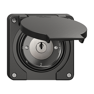 Interruttore rotativo • Con chiusura di sicurezza e 2 chiavi • 16 A, 240/400 V AC • Con morsetti a vite • Carico LED max: 200 W • Disco frontale 60 mm, per ritaglio 60 mm • Commutatore serie • 1/1 L • DI 0 - 1 - 1+2 - 2 • N.CO.Q • nero • IP55 • 87 x 87 mm • Resistenza agli urti: IK07 • 4 posizioni d'uscita