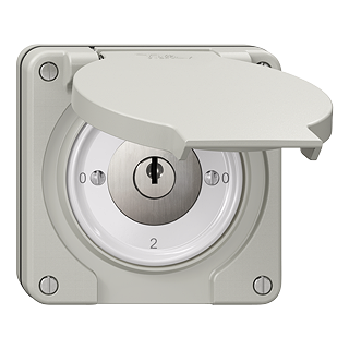 Interrupteur rotatif • Avec serrure de sûreté et 2 clés • 16 A, 240/400 V AC • Avec bornes à vis • Charge LED max: 200 W • Disque frontale 60 mm, pour découpe 60 mm • Commutateur • 2/2 L • DI 0 - 1 - 0 - 2 • Profondeur 53 mm • NUP.Q • gris clair • IP55 • 87 x 87 mm • Résistance aux chocs: IK07 • 4 positions d'enlèvement
