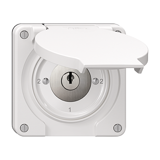 STANDARDdue (SNAPFIX) • Set de recouvrement • Pour interrupteur rotatif avec serrure de sûreté • Inscription 2 - 1 - 2 - 1 • Sans plaque de recouvrement • Disque frontale 60 mm, pour découpe 58 mm • blanc