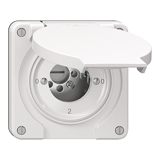 STANDARDdue (SNAPFIX) • Set di copertura • Per pulsante rotativo con chiusura sicurezza • Iscrizione 0 - 1 - 0 - 2 • Senza placca di copertura • Disco frontale 60 mm, per ritaglio 58 mm • bianco