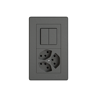 EDIZIO.liv •  Kombination •  Senkrecht •  Doppel-Druckschalter Serie 1/1 L - Dreifach-Steckdose Typ 13 •  SNAPFIX® Befestigungssystem •  Einbautiefe 40 mm •  GMI.A •  dunkelgrau •  IP20 •  156 x 96 mm (153 x 93 mm)