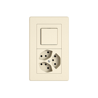 EDIZIO.liv • Combinaison • Verticale • Interrupteur à poussoir inverseur 3/1 L - Prise triple type 13 • Système de fixation SNAPFIX® • Profondeur 40 mm • GMI.A • crema • IP20 • 156 x 96 mm (153 x 93 mm)