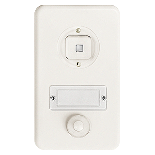 Combinazione • Verticale • Pulsante luminoso chiusura-apertura 1 L - Pulsante per suoneria chiusura 1 L • Illuminazione d'orientamento • Con LED giallo 1,0 mA • Con lente frontale • Profondità 35 mm • POMI • bianco • IP20 • 146 x 86 mm