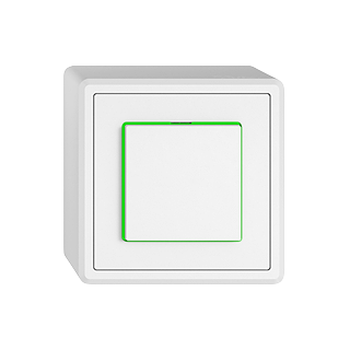 EDIZIO.liv • Contact à poussoir • Lumineux • Avec lentille latérale • 16 A, 230 V AC • Avec bornes enfichables • Fermeture-ouverture • 1 L • Avec LED vert 1,0 mA • Éclairage d'orientation • Système de fixation SNAPFIX® • Hauteur 58 mm • GX.54.A • blanc • IP20 • 74 x 74 mm