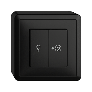 Set de recouvrement • Pour interrupteur à poussoir pour lumière et ventilation • Avec 2 boutons-poussoir • Avec lentille frontale • Sans cadre de recouvrement • F • noir