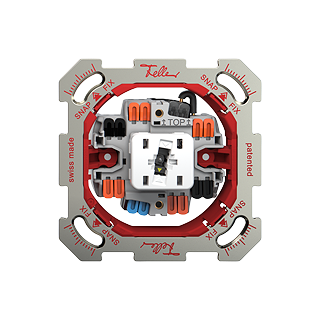 Le système de fixation en deux étapes Feller SNAPFIX® réduit les tâches de planification, commande et installation grâce à une découpe symétrique unitaire pratiquée dans la plaque de fixation et à l’adaptateur rouge sur l’unité fonctionnelle. Ce dernier est clipsé dans la plaque de fixation (SNAP), puis les quatre crans sont fixés aux angles à l’aide d’un tournevis de taille 2 (FIX). De conception modulaire, Feller SNAPFIX® est compatible avec toutes les fonctions Feller.
