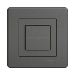 EDIZIO.liv • Pulsante per tapparelle 1 canale • 10 A, 250 V AC • Con tasto doppio • Con morsetti a innesto • Tempo minimo di commutazione (SU/GIU) <500 ms possibile • Sistema de fissagio SNAPFIX® • Profondità 27 mm • GMI.A • grigio scuro • IP20 • 96 x 96 mm (93 x 93 mm)