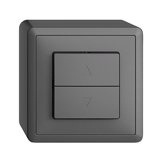 Interrupteur pour stores 1 canal • 10 A, 250 V AC • Avec 2 touches • Avec bornes enfichables • Temps d'inversion minimum (MONT/DESC) <500 ms possible • Hauteur 59 mm • FX.54 • gris foncé • IP20 • 74 x 74 mm