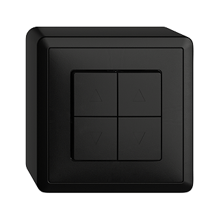 Interruttore per tapparelle 2 canali • 10 A, 250 V AC • Con 4 pulsanti • Con morsetti a innesto • Tempo minimo di commutazione (SU/GIU) <500 ms possibile • Altezza 59 mm • FX.54 • nero • IP20 • 74 x 74 mm