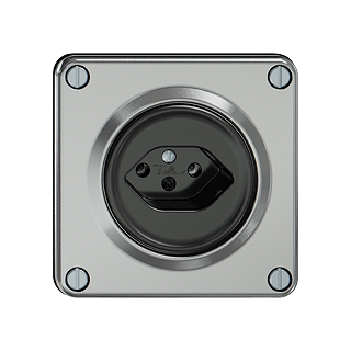 ELEMENT • Presa semplice tipo 13 • 10 A, 250 V AC, L + N + PE • Con morsetti a innesto • Disco frontale 53 mm • Sistema de fissagio SNAPFIX® • Profondità 41 mm • GU.CO.Q.A • alluminio • IP20 • 87 x 87 mm