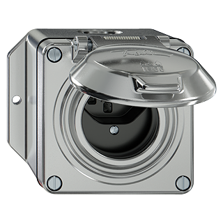 ELEMENT • Prise simple type 23 • 16 A, 250 V AC, L + N + PE • Avec bornes enfichables • Disque frontale 53 mm • Système de fixation SNAPFIX® • Hauteur 88 mm • GAP.Q.A • aluminium • IP55 • 96 x 111 mm