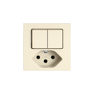 EDIZIO.liv • Petite combinaison • Non lumineux • Avec interrupteur à poussoir double et prise type 13 • 10 A, 250 V AC, L + N + PE • Avec bornes enfichables • Charge LED max: 100 W • Série, inverseur-inverseur • 1/3+3/1 L • Pour schéma 3+3 enlever le connecteur standard • Système de fixation SNAPFIX® • Profondeur 39 mm • G.A • crema • IP20 • 60 x 60 mm
