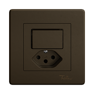 EDIZIO.liv • Kleinkombination • Unbeleuchtet • Mit Drucktaster und Steckdose Typ 13 • 10 A, 250 V AC, L + N + PE • Mit Steckklemmen • Schliesser-Öffner • 1 L • Mit Shutter • Beleuchtbar mit LED und Leucht-Druckknopf • SNAPFIX® Befestigungssystem • Einbautiefe 39 mm • GMI.A • umbra • IP20 • 96 x 96 mm (93 x 93 mm)