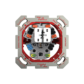 Le système de fixation en deux étapes Feller SNAPFIX® réduit les tâches de planification, commande et installation grâce à une découpe symétrique unitaire pratiquée dans la plaque de fixation et à l’adaptateur rouge sur l’unité fonctionnelle. Ce dernier est clipsé dans la plaque de fixation (SNAP), puis les quatre crans sont fixés aux angles à l’aide d’un tournevis de taille 2 (FIX). De conception modulaire, Feller SNAPFIX® est compatible avec toutes les fonctions Feller.
