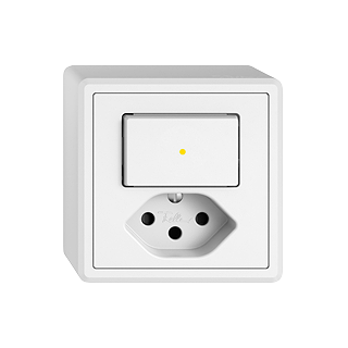 EDIZIO.liv • Piccola combinazione • Illuminato • Con lente frontale • Con pulsante e presa tipo 13 • 10 A, 250 V AC, L + N + PE • Con morsetti a innesto • Chiusura-apertura • 1 L • Con otturatore • Con LED giallo 1,0 mA • Illuminazione d'orientamento • Sistema de fissagio SNAPFIX® • Altezza 58 mm • GX.54.A • bianco • IP20 • 74 x 74 mm