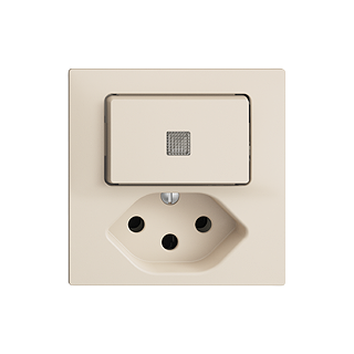 Petite combinaison • Lumineux • Avec lentille frontale • Avec interrupteur à poussoir et prise type 13 • 10 A, 250 V AC, L + N + PE • Avec bornes enfichables • Charge LED max: 100 W • Inverseur • 3/1 L • Avec LED jaune 1,0 mA • Éclairage d'orientation • Profondeur 40 mm • F • crema • IP20 • 60 x 60 mm