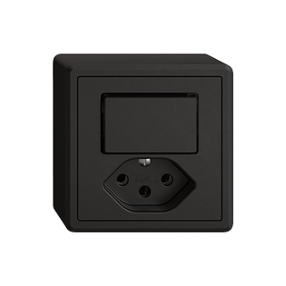 EDIZIO.liv • Petite combinaison • Non lumineux • Avec interrupteur à poussoir et prise type 13 • 10 A, 250 V AC, L + N + PE • Avec bornes enfichables • Charge LED max: 100 W • Permutateur • 6/1 L • Illuminable avec LED et bouton-poussoir avec lentille • Système de fixation SNAPFIX® • Hauteur 58 mm • GX.54.A • noir • IP20 • 74 x 74 mm