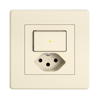 EDIZIO.liv • Petite combinaison • Lumineux • Avec lentille frontale • Avec interrupteur à poussoir et prise type 13 • 10 A, 250 V AC, L + N + PE • Avec bornes enfichables • Charge LED max: 100 W • Permutateur • 6/1 L • Avec Shutter • Avec LED jaune 1,0 mA • Éclairage de contrôle • Système de fixation SNAPFIX® • Profondeur 39 mm • GMI.A • crema • IP20 • 96 x 96 mm (93 x 93 mm)