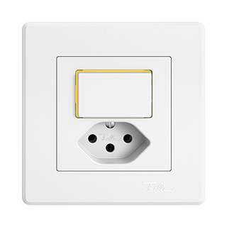 EDIZIO.liv • Kleinkombination • Beleuchtet • Mit Seitenlinse • Mit Druckschalter und Steckdose Typ 13 • 10 A, 250 V AC, L + N + PE • Mit Steckklemmen • LED-Last max: 100 W • Kreuz • 6/1 L • Mit LED Gelb 1,0 mA • Orientierungsbeleuchtung • SNAPFIX® Befestigungssystem • Einbautiefe 39 mm • GMI.A • weiss • IP20 • 96 x 96 mm (93 x 93 mm)