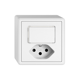 EDIZIO.liv • Petite combinaison • Lumineux • Avec lentille latérale • Avec interrupteur à poussoir et prise type 13 • 10 A, 250 V AC, L + N + PE • Avec bornes enfichables • Charge LED max: 100 W • Permutateur • 6/1 L • Avec Shutter • Avec LED blanc 1,0 mA • Éclairage d'orientation • Système de fixation SNAPFIX® • Hauteur 58 mm • GX.54.A • blanc • IP20 • 74 x 74 mm