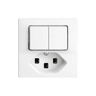 Petite combinaison • Non lumineux • Avec interrupteur à poussoir double et prise type 23 • 16 A, 250 V AC, L + N + PE • Avec bornes enfichables • Charge LED max: 200 W • Série, inverseur-inverseur • 1/3+3/1 L • Pour schéma 3+3 enlever le connecteur standard • Profondeur 40 mm • F • blanc • IP20 • 60 x 60 mm