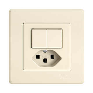 EDIZIO.liv • Piccola combinazione • Non illuminato • Con pulsante doppio e presa tipo 23 • 16 A, 250 V AC, L + N + PE • Con morsetti a innesto • Chiusura-apertura • 2 x 1 L • Sistema de fissagio SNAPFIX® • Profondità 39 mm • GMI.A • crema • IP20 • 96 x 96 mm (93 x 93 mm)