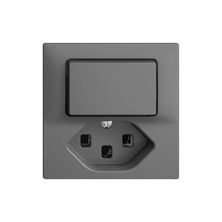 Petite combinaison • Non lumineux • Avec interrupteur à poussoir et prise type 23 • 16 A, 250 V AC, L + N + PE • Avec bornes enfichables • Charge LED max: 200 W • Inverseur • 3/1 L • Illuminable avec LED et bouton-poussoir avec lentille • Profondeur 40 mm • F • gris foncé • IP20 • 60 x 60 mm