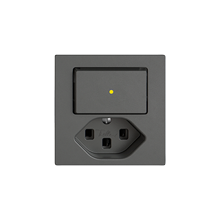 EDIZIO.liv • Petite combinaison • Lumineux • Avec lentille frontale • Avec interrupteur à poussoir et prise type 23 • 16 A, 250 V AC, L + N + PE • Avec bornes enfichables • Charge LED max: 200 W • Inverseur • 3/1 L • Avec LED jaune 1,0 mA • Éclairage d'orientation • Système de fixation SNAPFIX® • Profondeur 39 mm • G.A • gris foncé • IP20 • 60 x 60 mm