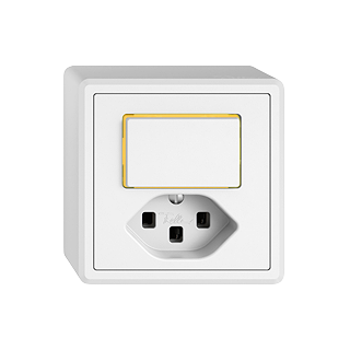 EDIZIO.liv • Petite combinaison • Lumineux • Avec lentille latérale • Avec interrupteur à poussoir et prise type 23 • 16 A, 250 V AC, L + N + PE • Avec bornes enfichables • Charge LED max: 200 W • Inverseur • 3/1 L • Avec LED jaune 1,0 mA • Éclairage d'orientation • Système de fixation SNAPFIX® • Hauteur 58 mm • GX.54.A • blanc • IP20 • 74 x 74 mm
