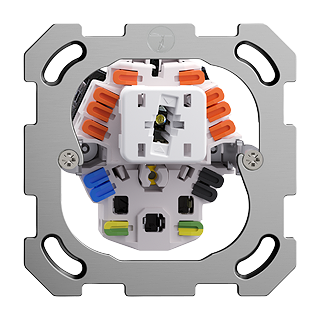 Petite combinaison • Lumineux • Avec interrupteur à poussoir et prise type 23 • 16 A, 250 V AC, L + N + PE • Avec bornes enfichables • Permutateur • 6/1 L • Avec LED bleu 1,0 mA • Éclairage de contrôle • BSE • incolore