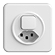 Petite combinaison • Non lumineux • Avec interrupteur à poussoir et prise type 23 • 16 A, 250 V AC, L + N + PE • Avec bornes enfichables • Charge LED max: 200 W • Disque frontale 60 mm, pour découpe 58 mm • Permutateur • 6/1 L • Illuminable avec LED et bouton-poussoir avec lentille • Profondeur 39 mm • Q • blanc • IP20 • Distance de fixation 52 mm