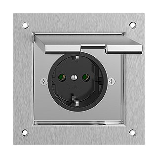 SCHUKO-Steckdose • 16 A, 250 V AC, L + N + PE • Mit Steckklemmen • Einbautiefe 38 mm • PMK • messing vernickelt • IP20 • 100 x 100 mm • SCHUKO-Steckdose Bodendosen