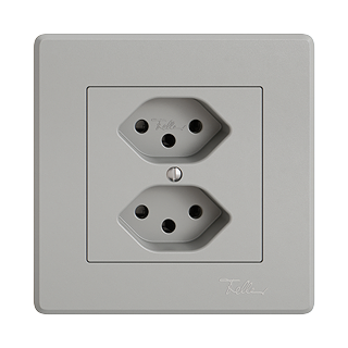 EDIZIO.liv • Prise double type 13 • 10 A, 250 V AC, L + N + PE • Avec bornes enfichables • Parallèle • Système de fixation SNAPFIX® • Profondeur 40 mm • GMI.A • gris clair • IP20 • 96 x 96 mm (93 x 93 mm)