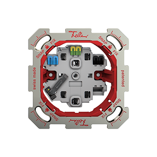 Le système de fixation en deux étapes Feller SNAPFIX® réduit les tâches de planification, commande et installation grâce à une découpe symétrique unitaire pratiquée dans la plaque de fixation et à l’adaptateur rouge sur l’unité fonctionnelle. Ce dernier est clipsé dans la plaque de fixation (SNAP), puis les quatre crans sont fixés aux angles à l’aide d’un tournevis de taille 2 (FIX). De conception modulaire, Feller SNAPFIX® est compatible avec toutes les fonctions Feller.