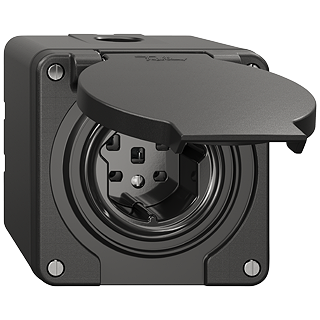 Prises type 25 • 16 A, 250 V AC, L + N + PE • 16 A, 440 V AC, 3 L + N + PE • Avec bornes enfichables • Disque frontale 53 mm, pour découpe 53 mm • Hauteur 70 mm • NAP.Q • noir • IP21 • 87 x 87 mm