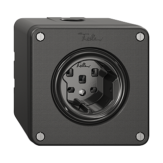 Steckdose Typ 25 • 16 A, 250 V AC, L + N + PE • 16 A, 440 V AC, 3 L + N + PE • Frontscheibe 53 mm, für Bohrung 50 mm • Mit Steckklemmen • Q • schwarz