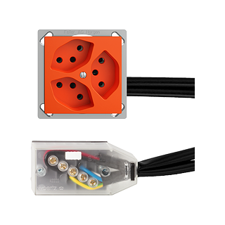 Prise triple type 13 • 10 A, 250 V AC, L + N + PE • Raccordement sur L3 • Parallèle • Profondeur 41 mm • FMTE • orange • IP20 • 70 x 70 mm • Avec adaptateur Technofil