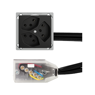 Presa tripla tipo 13 • 10 A, 250 V AC, L + N + PE • Raccordo su L3 • Parallela • Profondità 41 mm • FMTE • nero • IP20 • 70 x 70 mm • Con adattatore per cavo Technofil