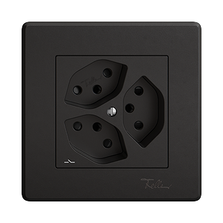 EDIZIO.liv • Prise triple type 13 • 10 A, 250 V AC, L + N + PE • Avec bornes enfichables • 1 prise séparée • Avec Shutter • Système de fixation SNAPFIX® • Profondeur 36 mm • GMI.A • noir • IP20 • 96 x 96 mm (93 x 93 mm)