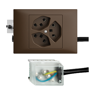 Dreifach-Steckdose Typ 23 • 16 A, 250 V AC, L + N + PE • Mit Steckklemmen • Parallel • coffee