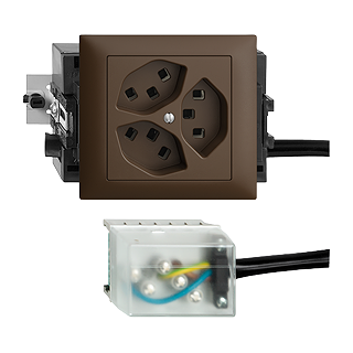 Prise triple type 23 • 16 A, 250 V AC, L + N + PE • Raccordement sur L2 • Parallèle • Avec boîte d'encastrement • FMTE • Avec adaptateur Ecobus power • coffee